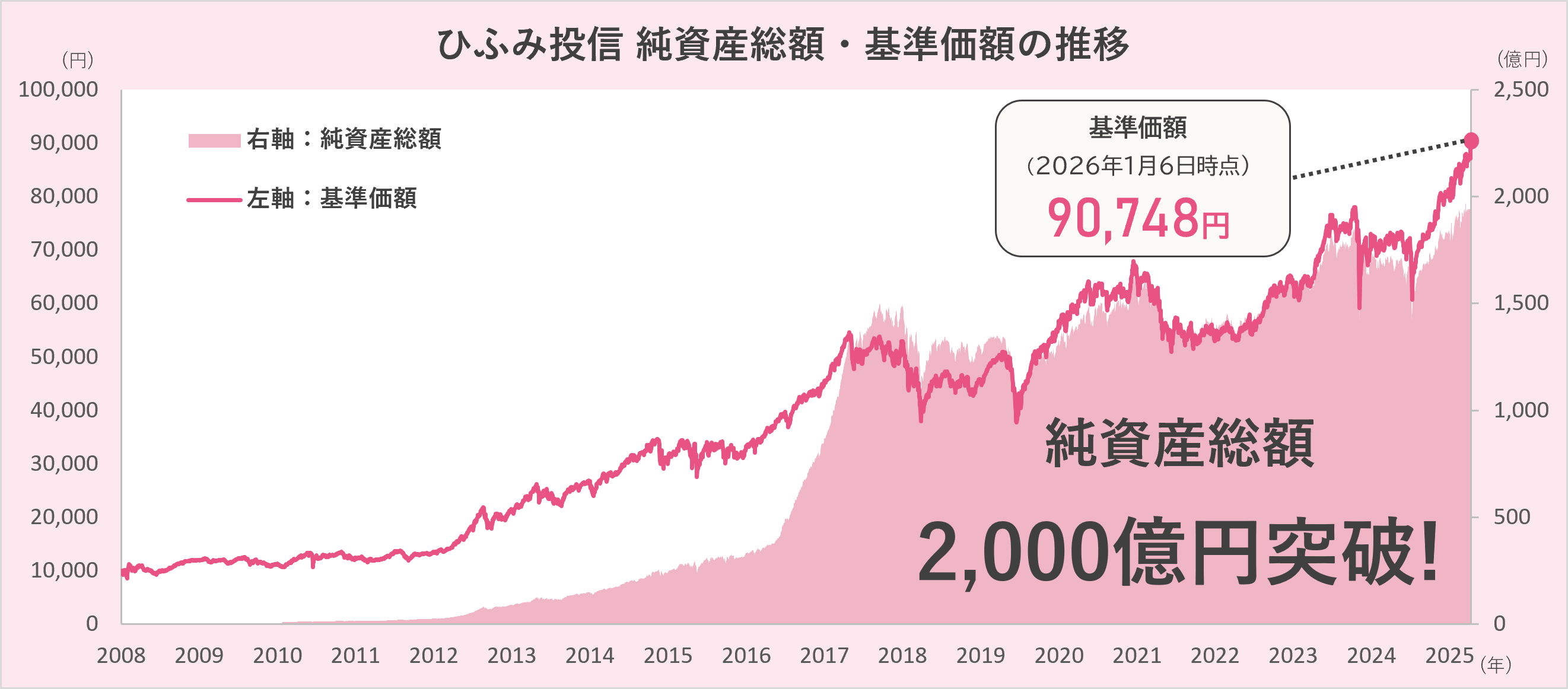 投資信託「ひふみ」シリーズを運用するレオス・キャピタルワークス株式会社(本社:東京都千代田区、代表取締役社長:藤野 英人、以下「当社」)は、2026年1月6日付で、「ひふみ投信」の純資産総額が2,000億円を突破いたしましたので、お知らせいたします。
