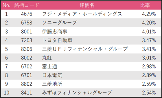 直近の保有銘柄推移(組入上位10銘柄、2025年11月末日時点)