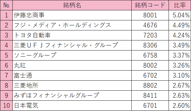 直近の保有銘柄推移(組入上位10銘柄、2025年12月末日時点)