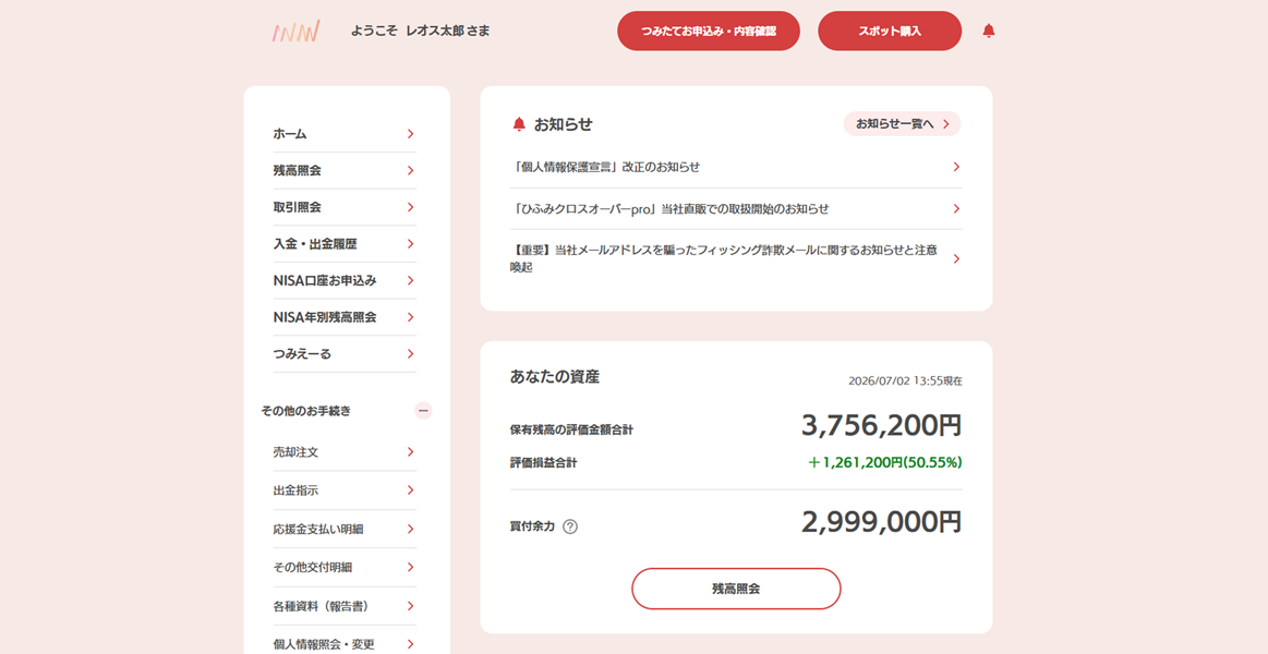 直販のお客様専用マイページ「ひふみWebサービス」デザインリニューアルのお知らせ