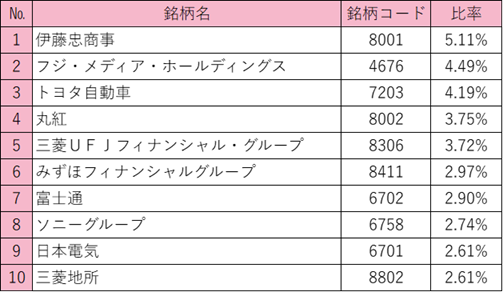 直近の保有銘柄推移(組入上位10銘柄、2026年1月末日時点)