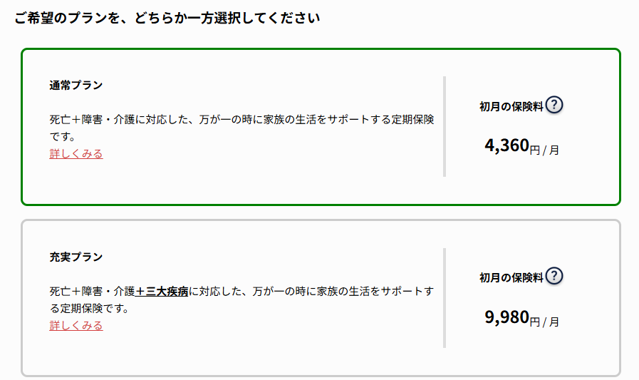 通常プラン:死亡保障+障害・介護保障*1に対応しています。