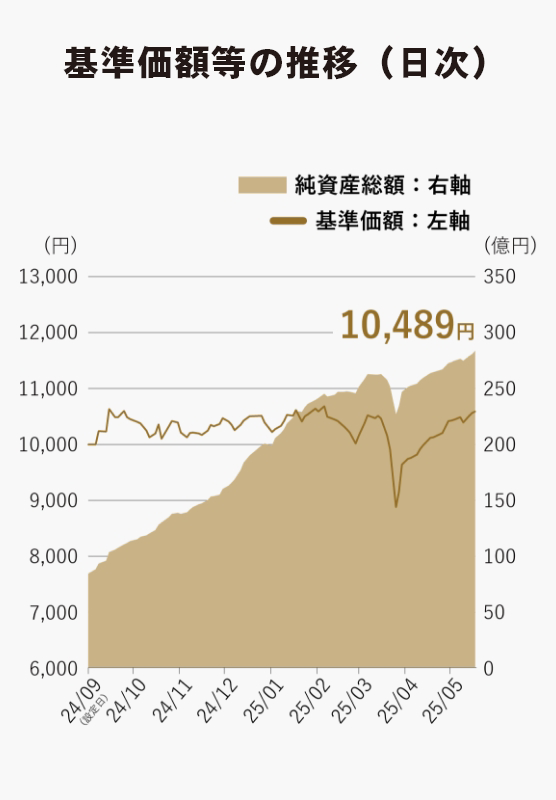 したがって、お客様(受益者)の投資元本は保証されているものではなく、基準価額の下落により損失を被り、投資元本を割り込むことがあります。詳しくは、投資信託説明書(交付目論見書)の「投資リスク」をご覧ください。